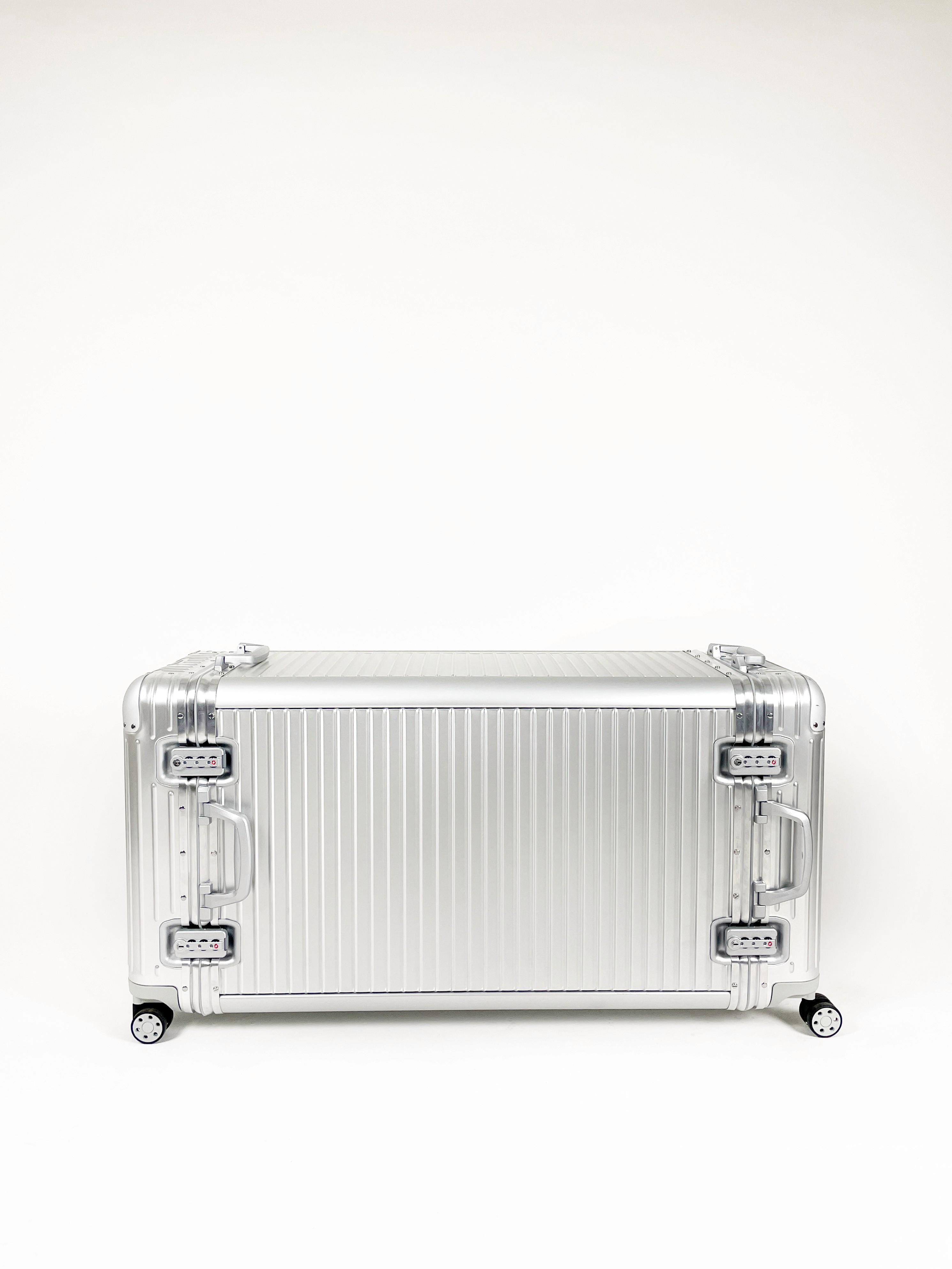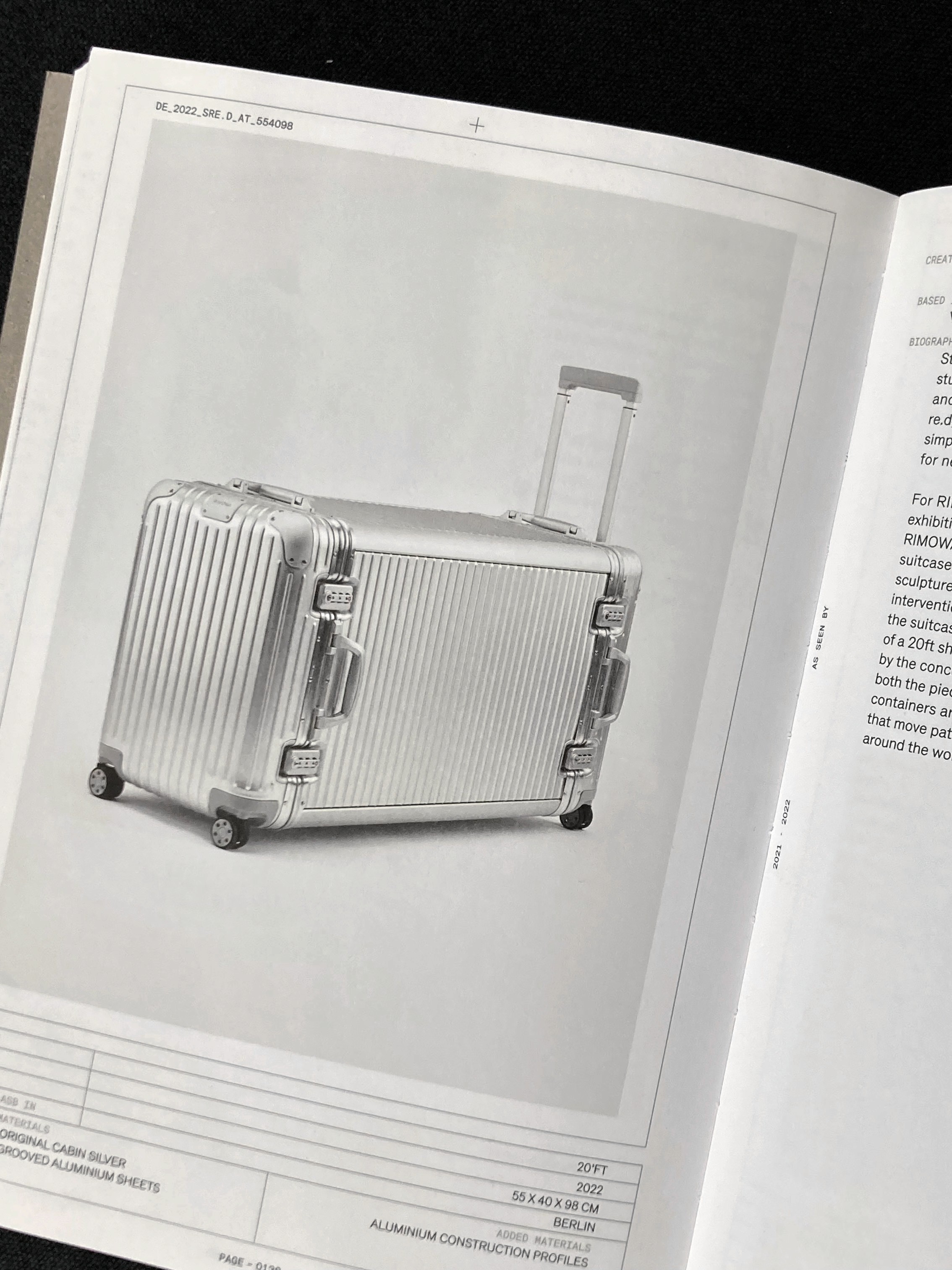 Commissioned work for RIMOWAs exhibition “As Seen by" in Berlin. A precise formal intervention gives the cabin-sized aluminum suitcase the proportions of a 20-foot shipping container.