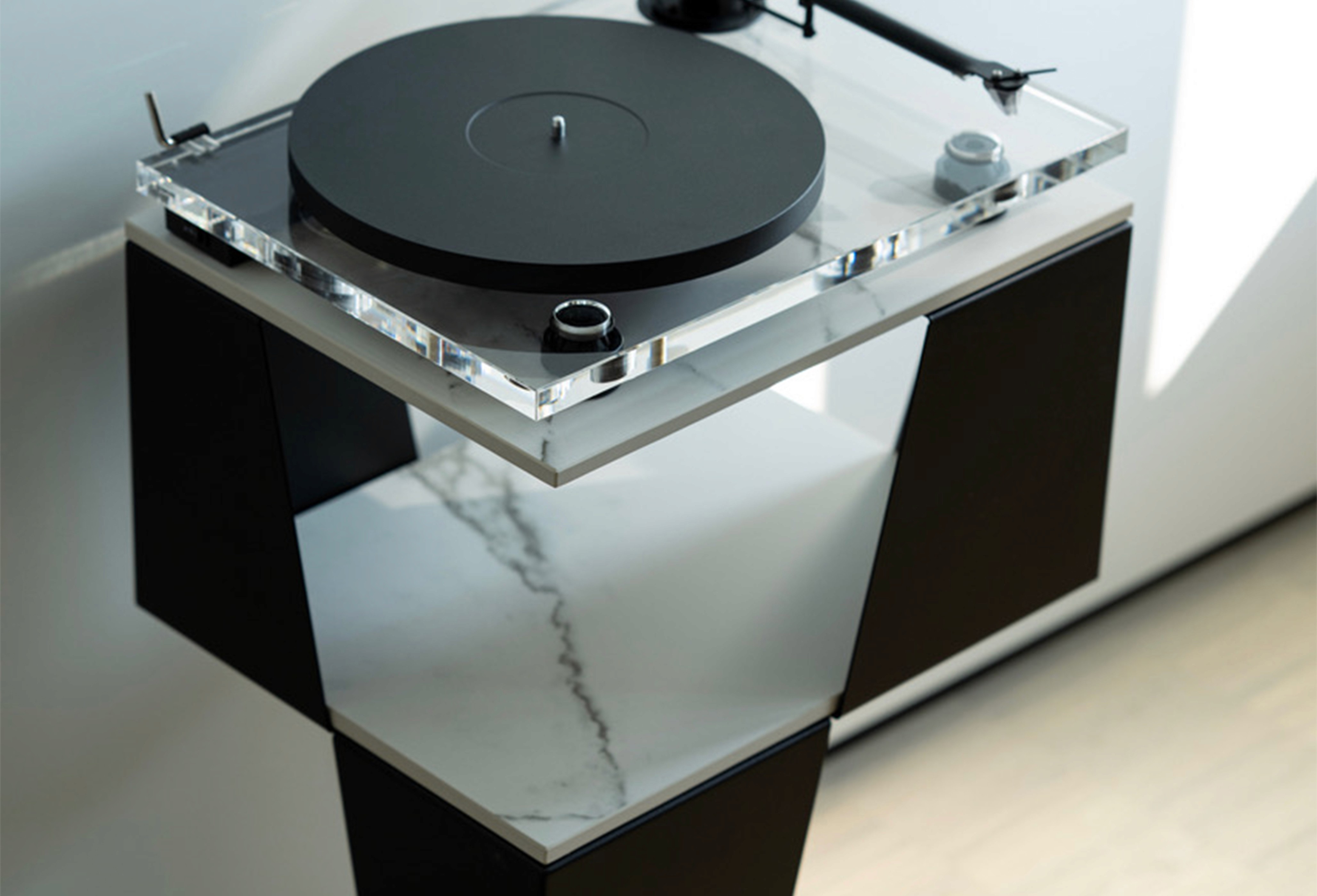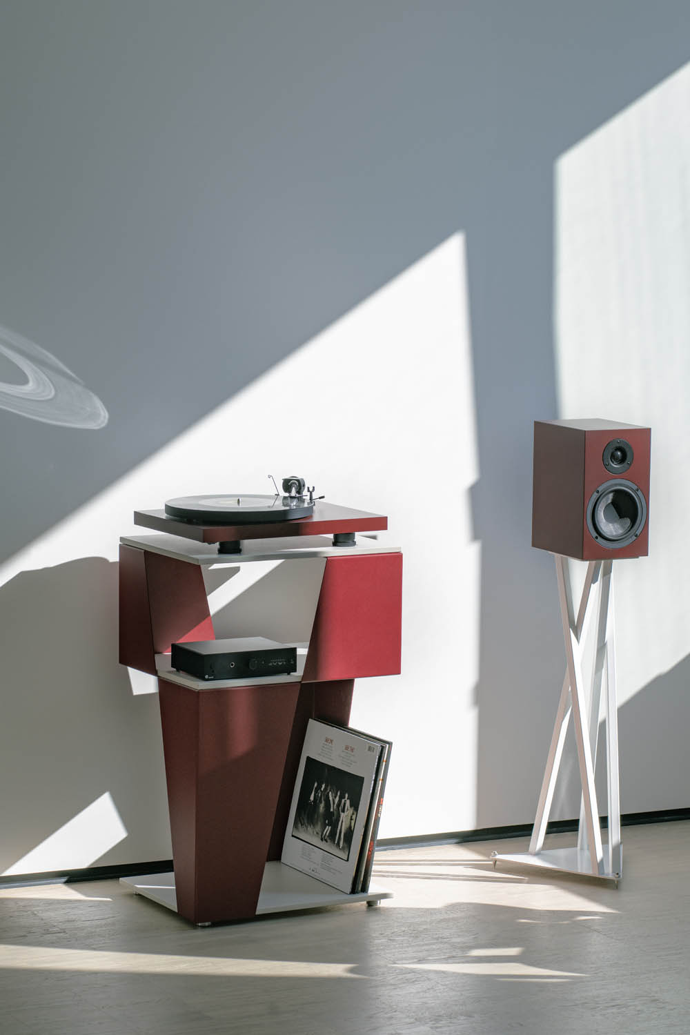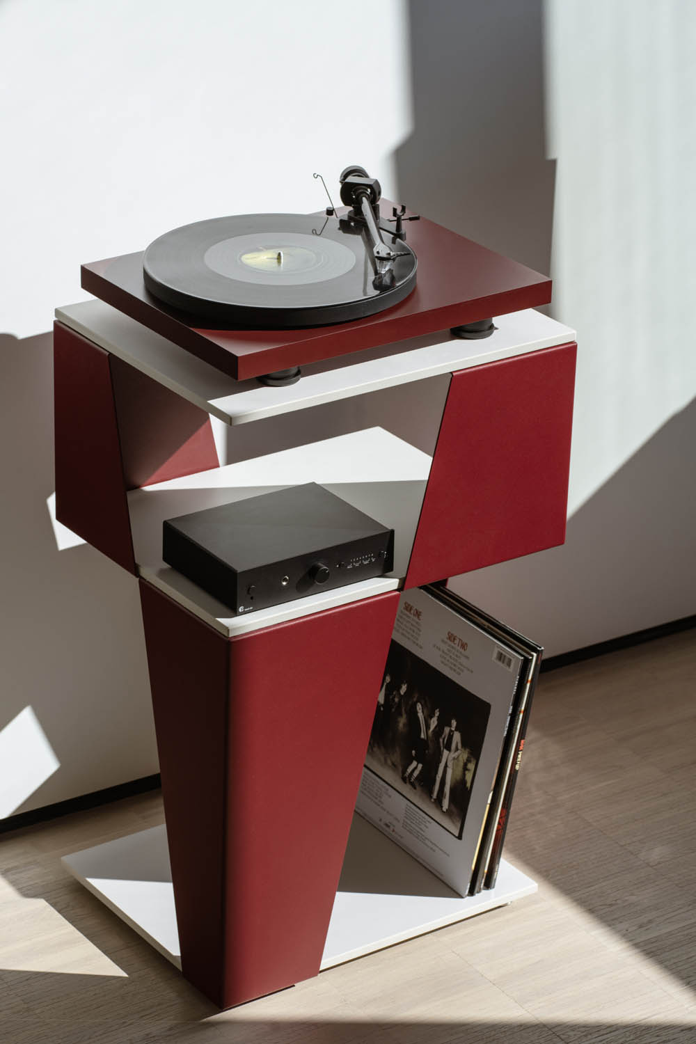 The Colourful Turntable Stand is a design concept by studio re.d, created in close collaboration with Pro-Ject Audio Systems and Cosentino. The design complements Pro-Jet’s Colourful Audio System, a fully functional hifi system, known for its high-quality technology and bold colors. The turntable stand is meticulously designed both aesthetically and technically to complement this system, offering an ideal foundation for high-fidelity music enjoyment.