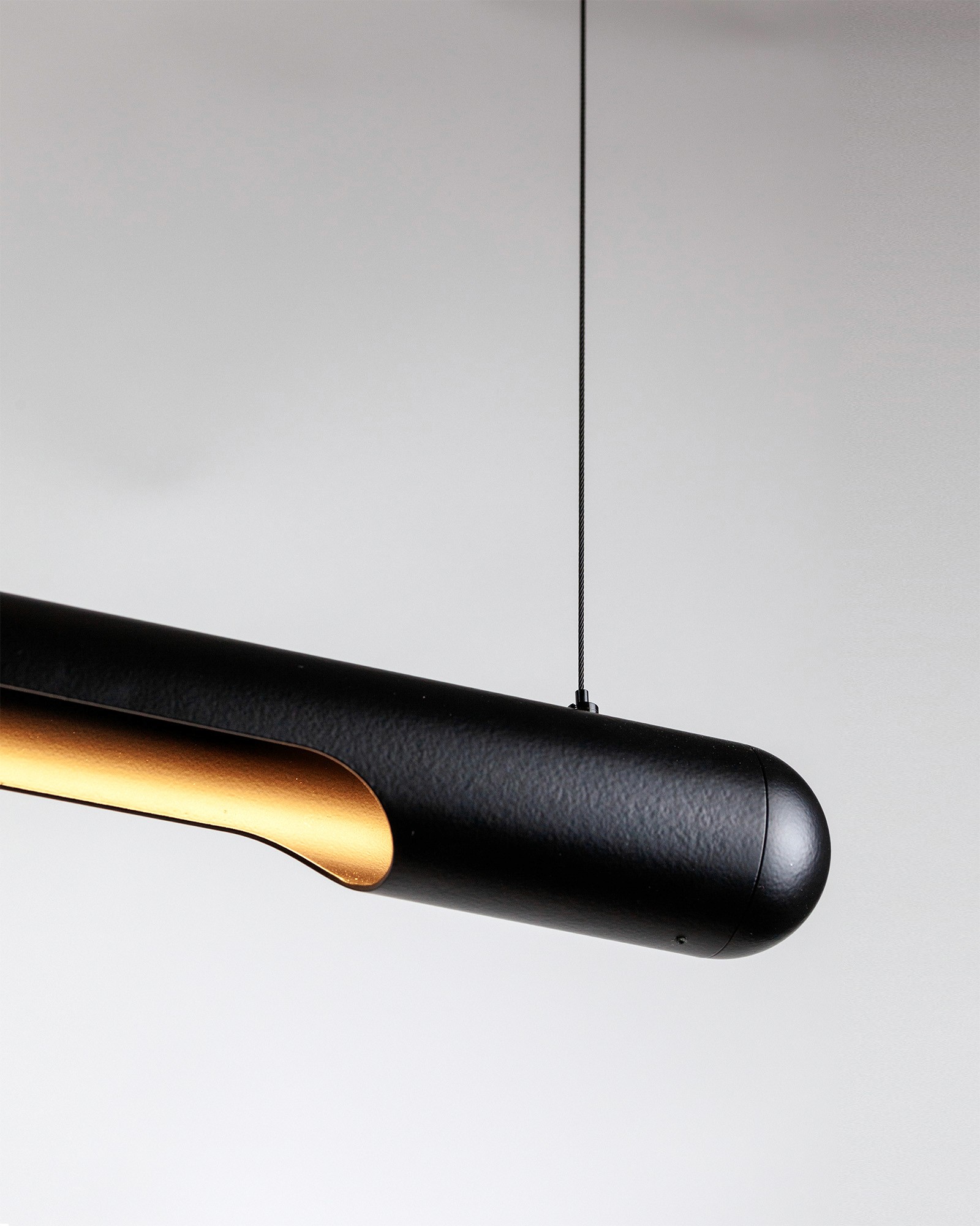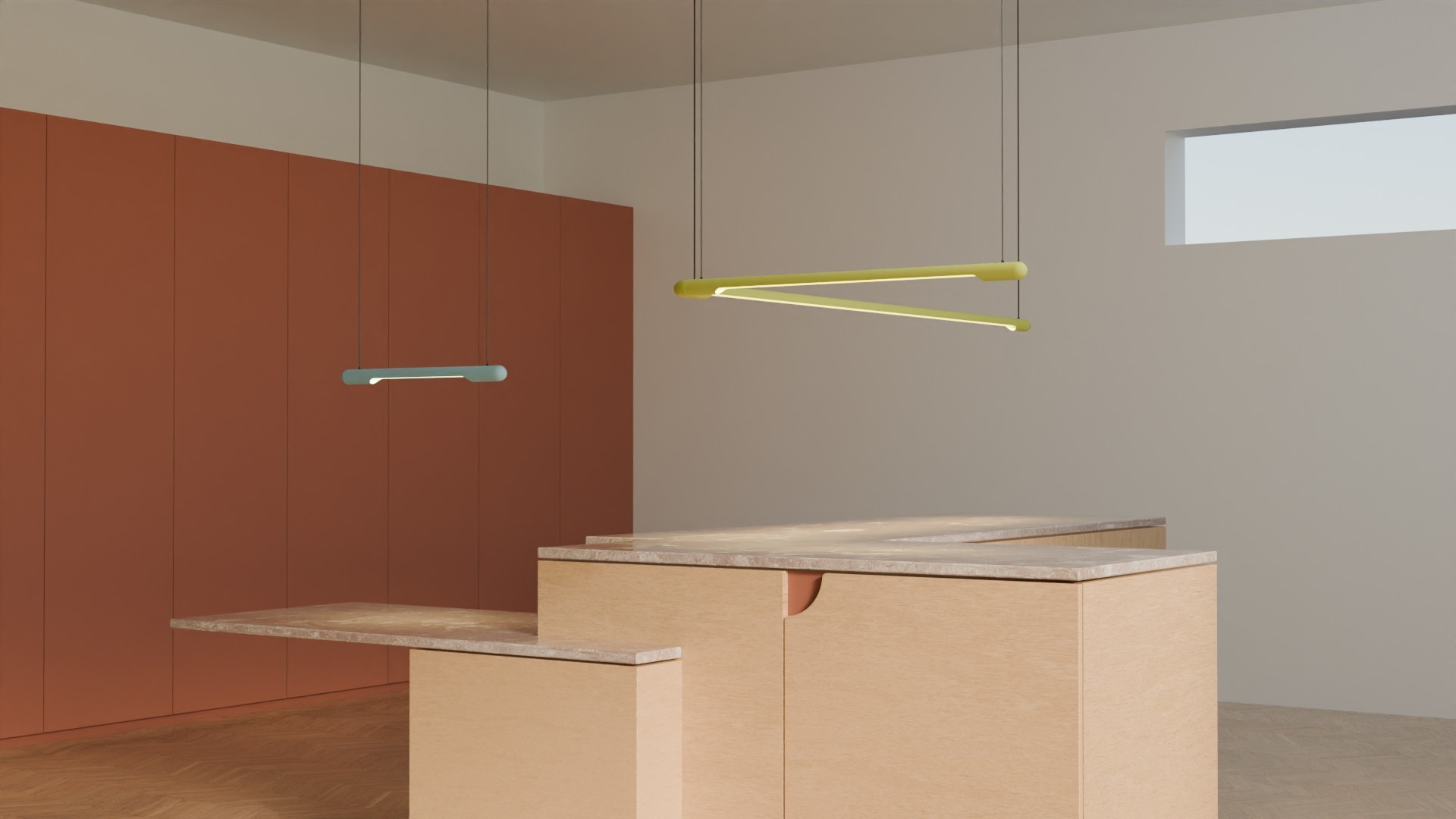 The Flybar Lamp is crafted from handrail components, transforming a standard industrial product into an aesthetically appealing and functional design object.