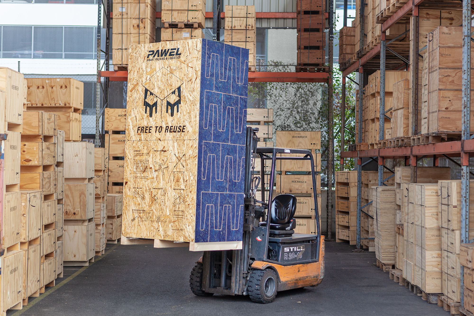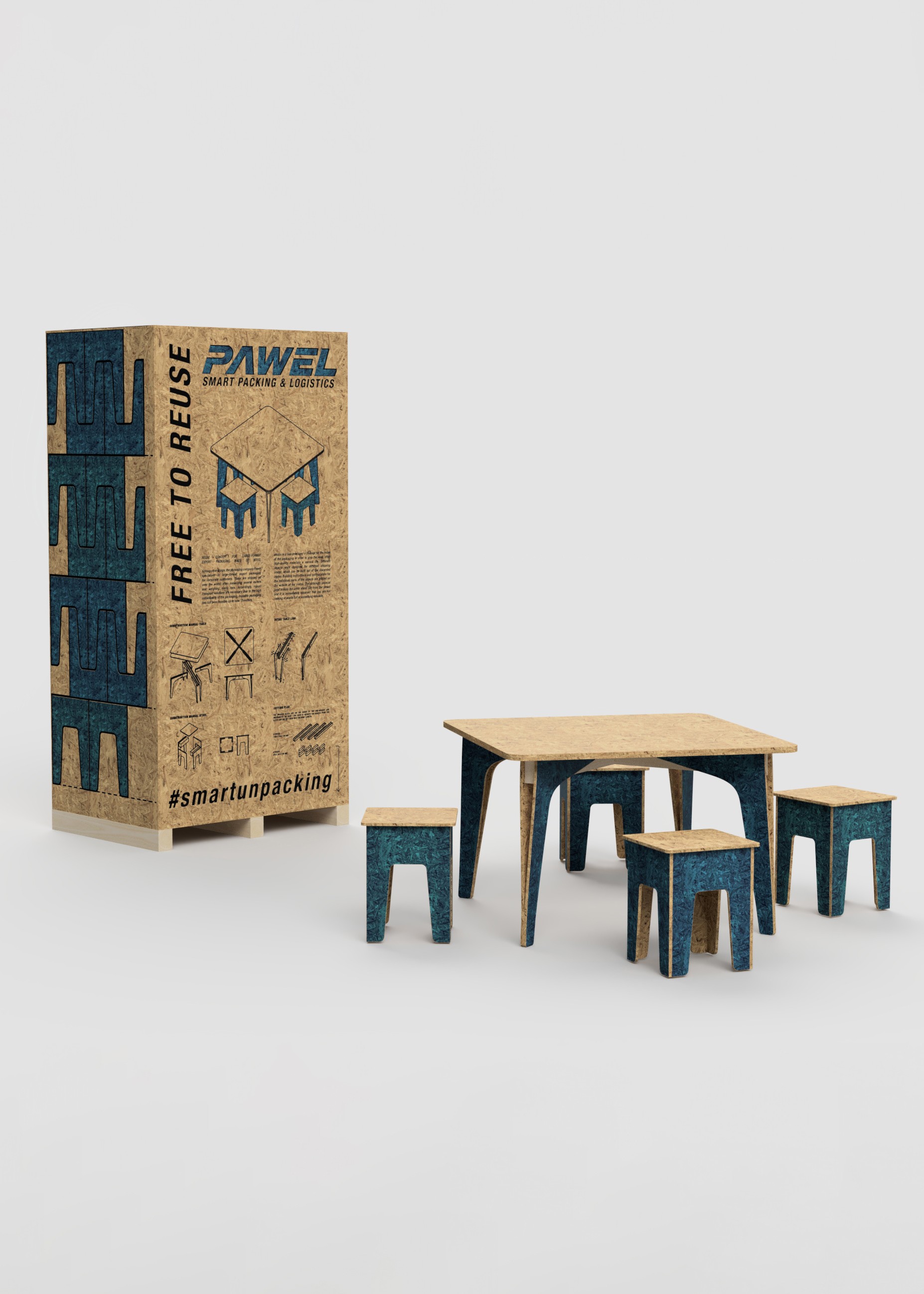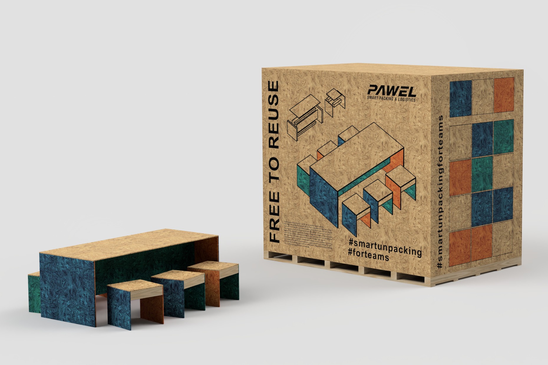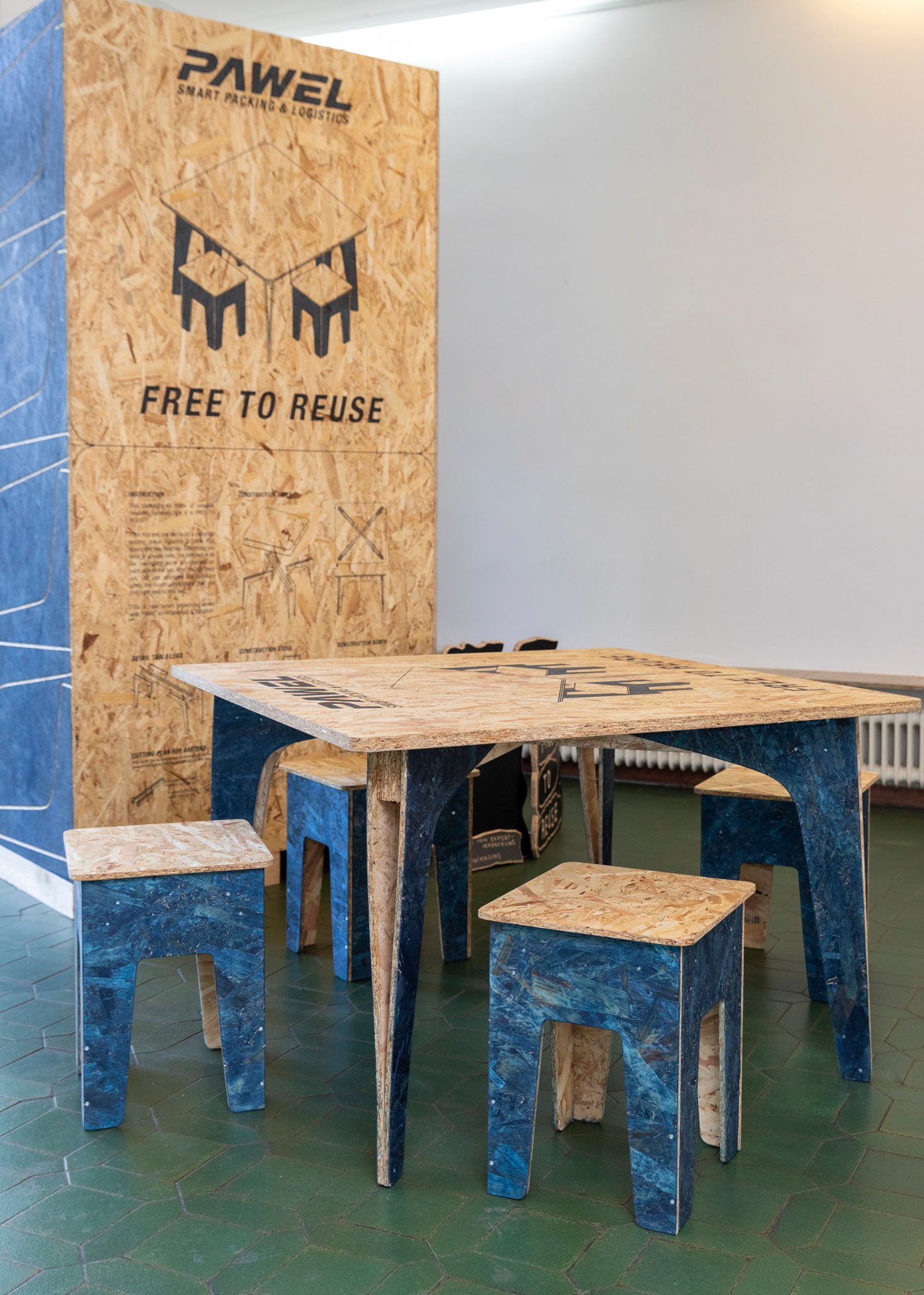 A concept was developed for the company PAWEL smart packing & logistics in cooperation with Ökobusiness Wien and the Vienna Design Week to give large-scale wooden export packaging a second life.